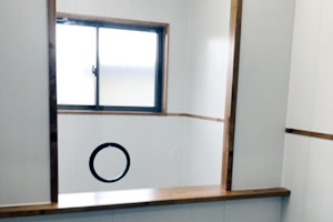 コロナ、インフルエンザの流行期に向けて、専用の検査室を作りました。医院とは離れた建物です。室内には、患者さんと医療者の間にアクリルパネルの間仕切りがあり、手を出して検体採取が行えるようになっています。換気もしっかり行えます。